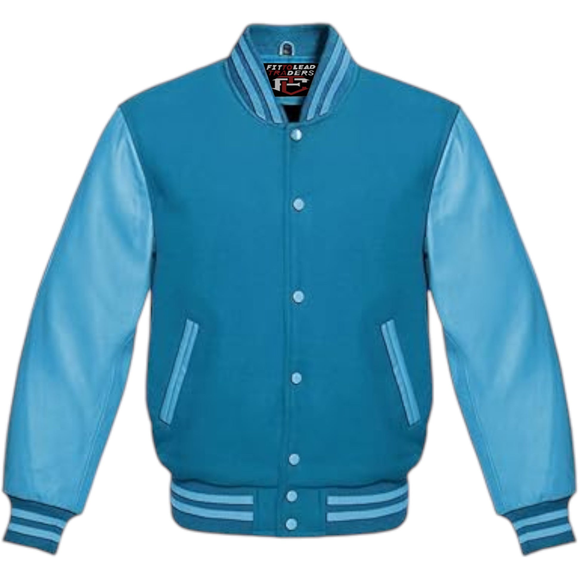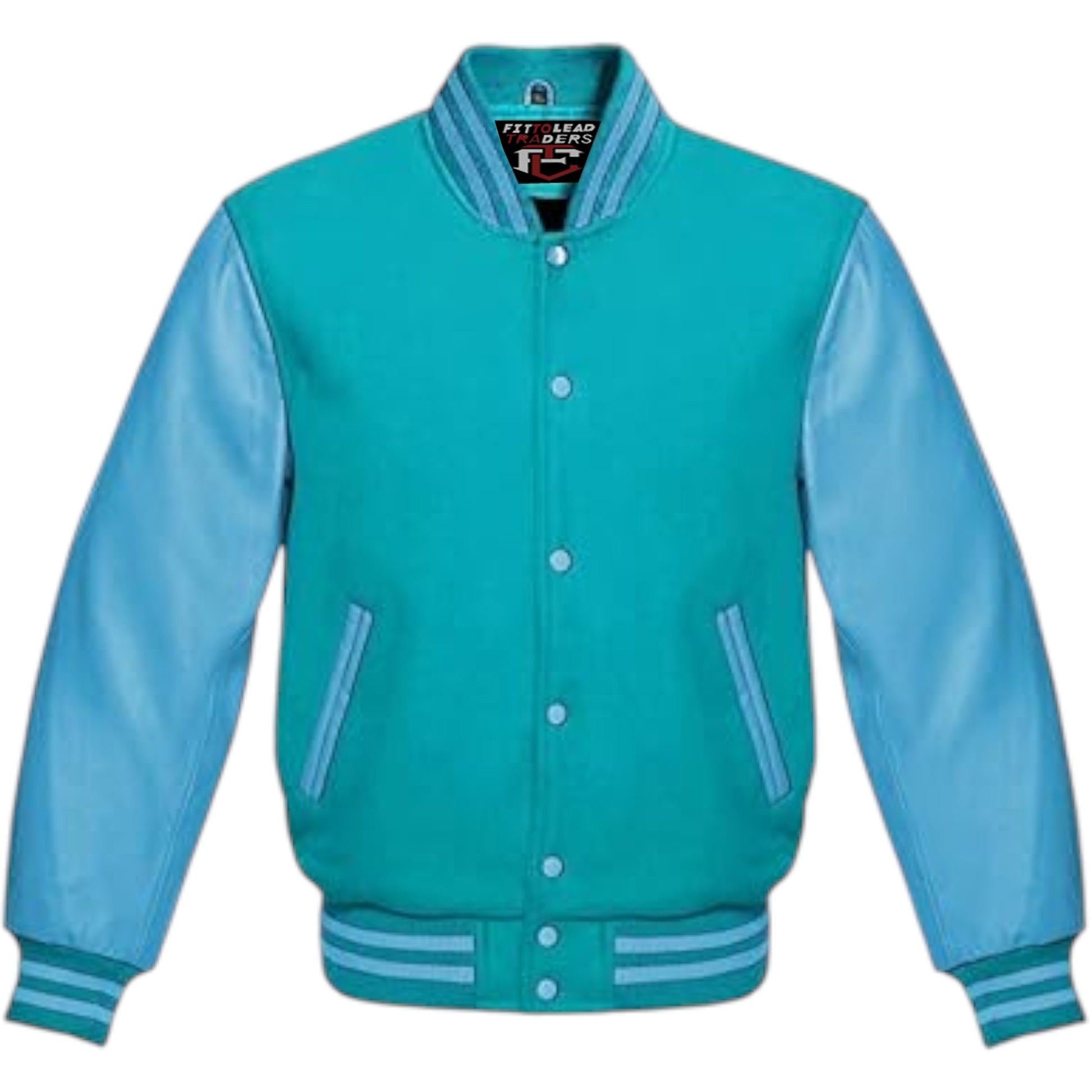 Expertly crafted with genuine sky blue leather sleeves, this Multicolor Wool Varsity Jacket Genuine Sky Leather Sleeves is both stylish and durable. The contrasting materials create a unique, eye-catching aesthetic, while premium construction ensures long-lasting wear. Perfect for casual outings or streetwear, this jacket is a statement piece that elevates any wardrobe.