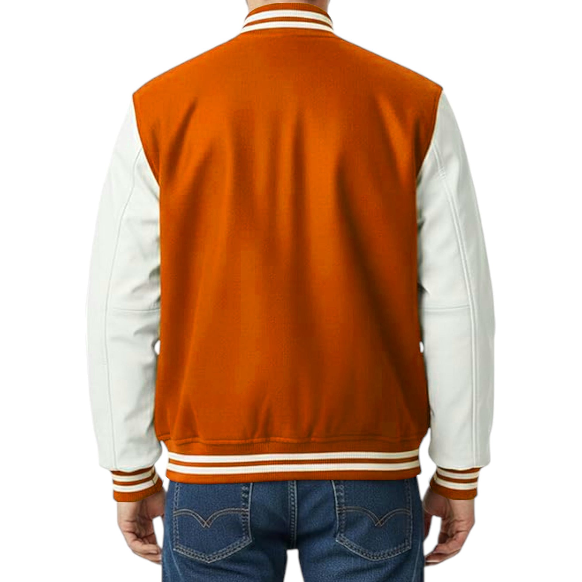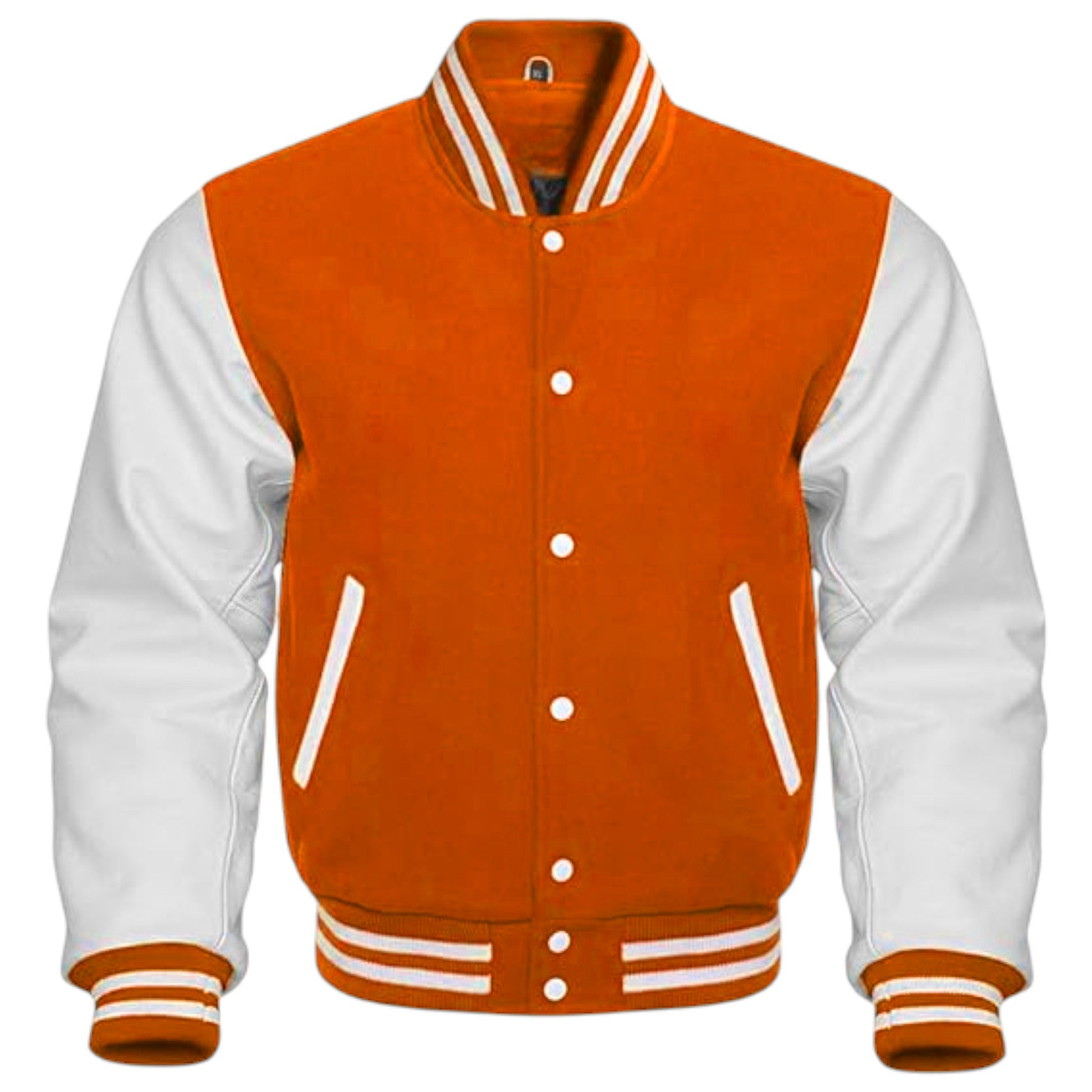 Orange & White Unisex Varsity Jacket Classic Letterman Style